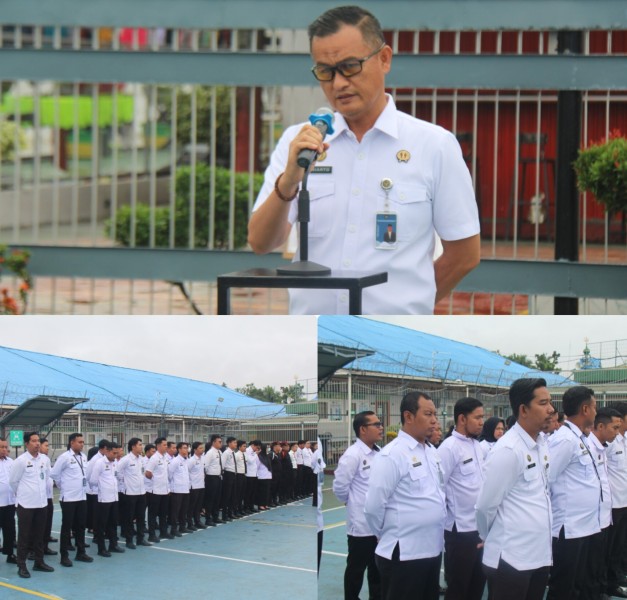 Kepala Lapas Pekanbaru, Yuniarto saat pimpin apel pagi, Senin (15/12/2025)