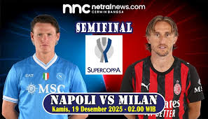 Bola.com--(KIBLATRIAU.COM)--  Laga menarik tersaji pada semifinal Piala Super Italia yang berlangsung di Arab Saudi. Napoli akan bersua AC Milan di King Saud University Stadium, Riyadh, 19 Desember 2025 pukul 02.00 WIB.Napoli tampil di Piala Super Italia 2025/2026 sebagai scudetto Serie A 2024/2025. Sementara AC Milan merupakan runner-up Coppa Italia 2024/2025.