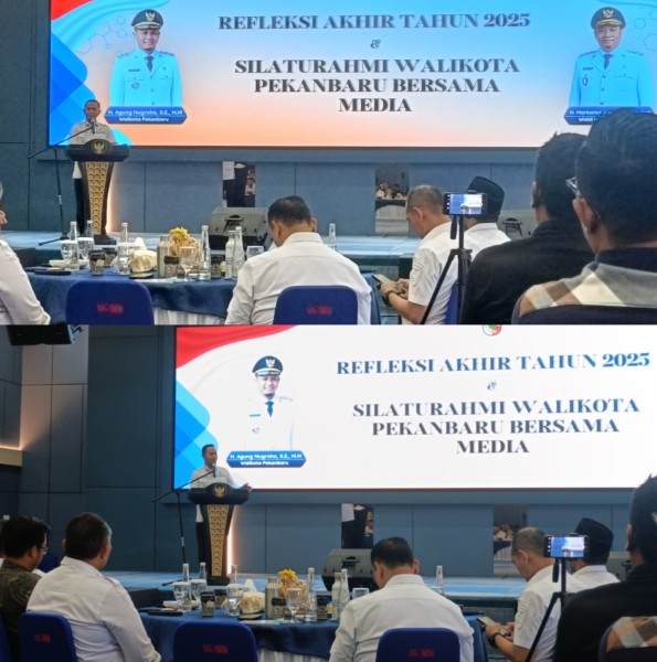 PEKANBARU--(KIBLATRIAU.COM)-- Pemerintah Kota (Pemko) Pekanbaru mengelar refleksi akhir tahun sekaligus silaturahmi bersama media. Kegiatan itu, berlangsung di Ball Room Lantai 6, Komplek Perkantoran Tenayan Raya, Rabu (32/12/2025). Pada acara iru, Pemerintah Kota Pekanbaru dalam hal ini disampaikan Walilota Pekanbaru Agung Nugroho SE MM telah