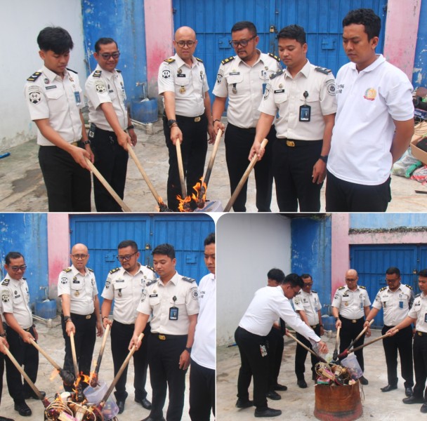 Pemusnahan barang bukti dilakukan terhadap berbagai benda terlarang yang ditemukan saat razia rutin di blok hunian warga binaan, seperti barang-barang yang berpotensi mengganggu stabilitas keamanan dan ketertiban. Seluruh barang bukti dimusnahkan sesuai dengan prosedur yang berlaku guna mencegah penyalahgunaan dikemudian hari.