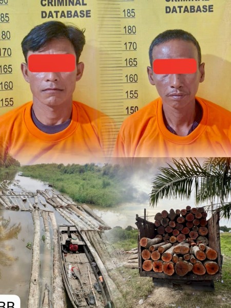 Adapun inisial kedua pelaku berhasil diamankan yakni An (48) dan Ri (49) beserta barang bukti 221 batang kayu yang telah diolah serta110 batang kayu lok atau gelondongan jenis Belanti dan Gedabuh dengan panjang kurang lebih 4 meter, 2 unit perahu sampan mesin robin, parang, martil, 3 mesin Chainsaw dan mobil truk jenis Toyota Dyna BM 8979 TM.