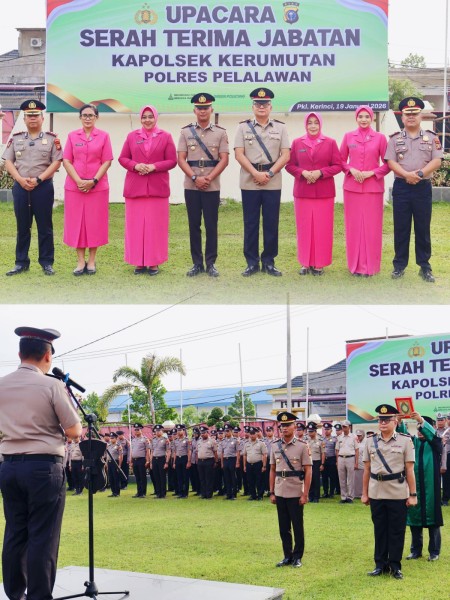 PELALAWAN--(KIBLATRIAU.COM)-- Bertempat di Halaman Polres Pelalawan, Kapolres Pelalawan AKBP John Louis Letedara SIK pimpin serah terima jabatan (Sertijab) Kapolsek Kerumutan, Senin (19/1/2026).