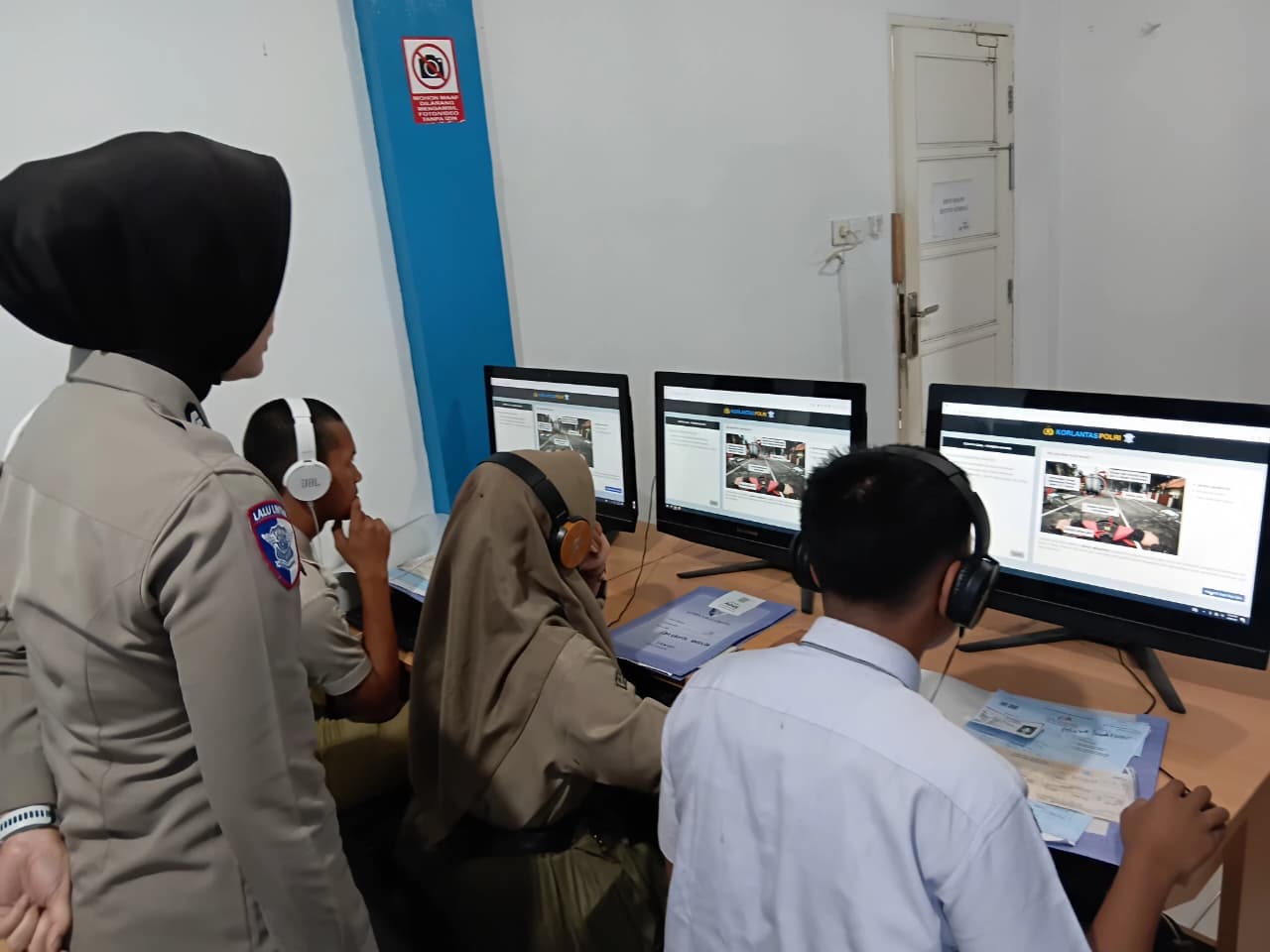 Meski begitu, para siswa juga tetap mengikuti tes teori dan praktik dalam proses pembuatan SIM gratis ini.