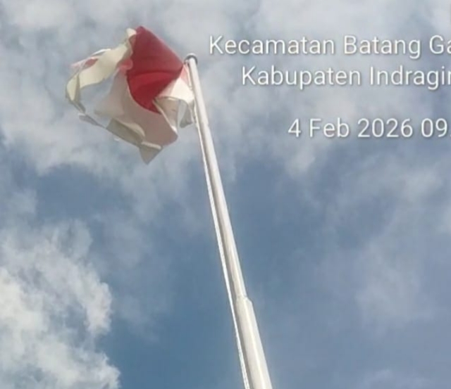 BATANGGANGSAL(KIBLATRIAU.COM)--Kantor Desa Ringin, Kecamatan Batang Gangsal, menjadi sorotan publik akibat kondisi bendera Merah Putih yang berkibar lusuh dan robek. Bendera yang seharusnya menjadi simbol kebanggaan dan patriotisme justru terlihat tak terawat, menimbulkan pertanyaan tentang disiplin dan kesadaran Kepala Desa Didik dalam menghormati simbol negara.