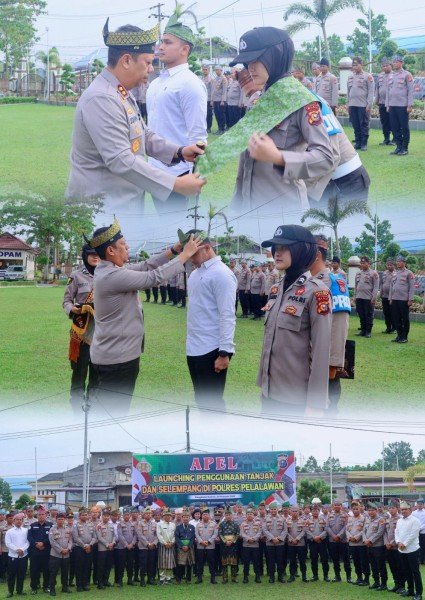 Kapolres Pimpin Launching Penggunaan Tanjak dan Selempang Personil Polres Pelalawan