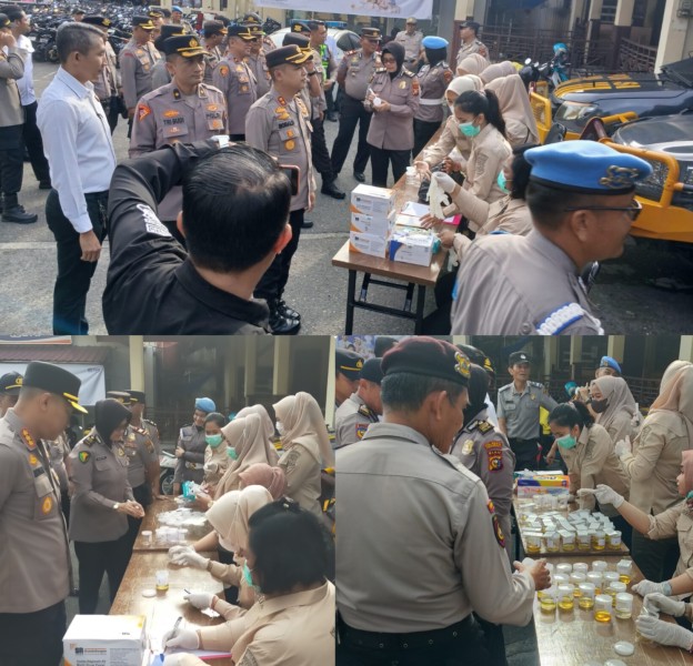 Polresta Pekanbaru melaksanakan pemeriksaan urine terhadap personel, Senin (23/02/2026).