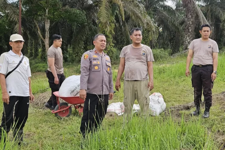 PEKANBARU--(KIBLATRIAU.COM)-- Dalam rangka mendukung ketahanan pangan, Polsek Pekanbaru Kota jajaran Polresta Pekanbaru melaksanakan kegiatan pemupukan tanaman jagung pipil di lahan ketahanan pangan yang berlokasi di Jalan Raja Panjang, Kelurahan Tembing Tinggi Okura, Kecamatan Rumbai, Kota Pekanbaru, Provinsi Riau, Ahad (22/2/2026).