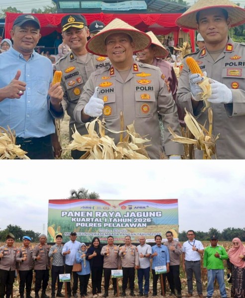"Panen raya jagung Kuartal I tahun 2026 ini, adalah bukti nyata koloborasi dan sinergi antara pemerintah daerah, aparat keamanan, dunia usaha, dan masyarakat," terang Kapolres Pelalawan.