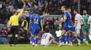 Alessandro Bastoni menerima kartu merah setelah melakukan tekel keras saat mencoba menghentikan serangan lawan. Ia berada dalam posisi tertinggal saat mengejar pemain Bosnia yang berpeluang mencetak gol.Keputusan tersebut membuat wasit langsung mengeluarkan kartu merah tanpa ragu. Situasi itu memaksa Italia bermain dengan 10 orang sejak menit ke-42.Tekel tersebut sebenarnya bertujuan mencegah peluang emas lawan. Namun risiko besar dari aksi itu berujung konsekuensi fatal bagi tim.Selain berdampak pada laga itu sendiri, kartu merah juga berpotensi membuat Bastoni absen di pertandingan berikutnya. Namun hal tersebut menjadi tidak relevan setelah Italia tersingkir.