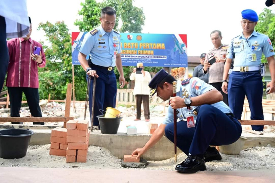 Danlanud Roesmin Nurjadin Letakan Batu Pertama Pembangunan Rumah Layak Huni bagi Warga Sidomulyo Timur
