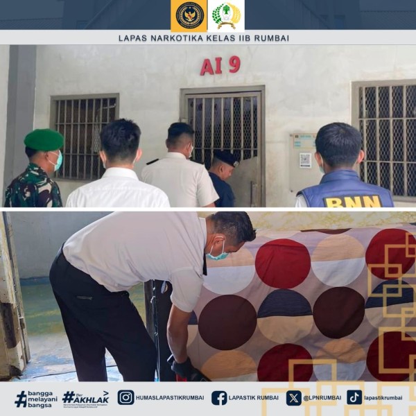 Lapas Narkotika Kelas IIB Rumbai Gelar Razia Insidentil secara Rutin di Kamar Hunian Warga Binaan